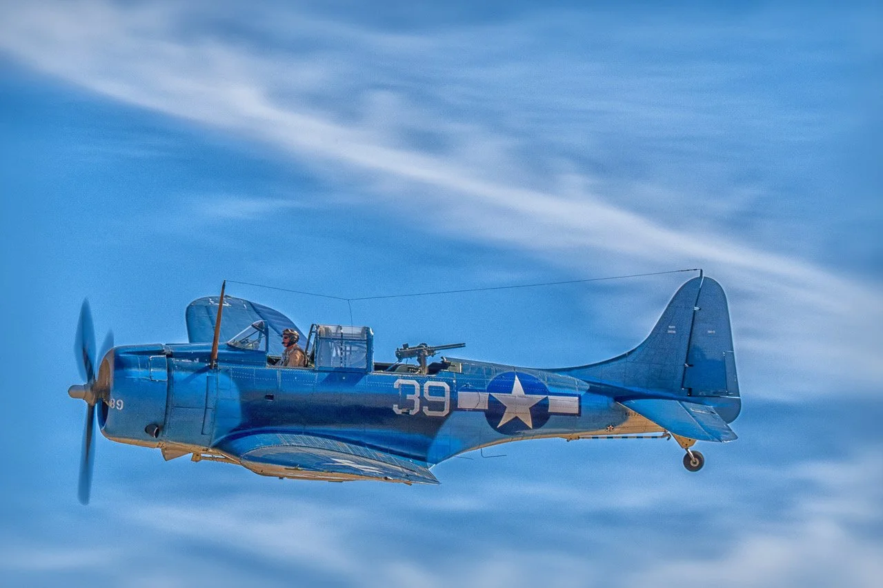 Planes of Fame WWII combat veteran SBD-5 Dauntless Dive Bomber, Apple Valley, California, by Jim Knauf